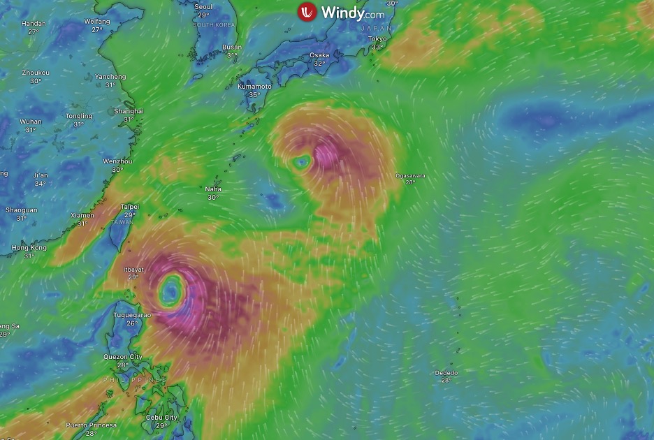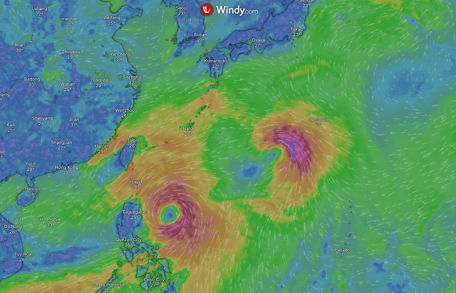 두 태풍의 진로는 아직 유동적인데요, 하나는 필리핀 동쪽 바다를 강타하며 북상한 뒤, 이시가키지마 남해에서 타이완쪽으로 방향을 튼 뒤, 타이완 북부지역을 강타할 것 같습니다. 이 태풍은 중국과 베트남에 큰 피해를 입힌 야기와 같은 위력을 가질 것으르 보입니다. 이후 진로는 타이완 북부지역을 거쳐 중국으로 북상할 것으로 예상됩니다.