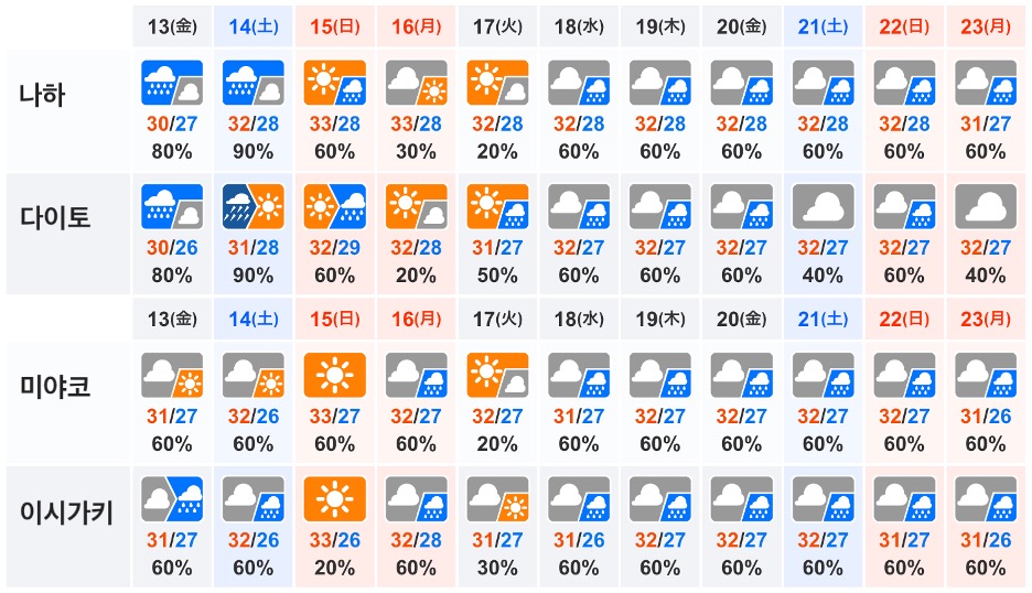 3. 오키나와 2주간 날씨정보