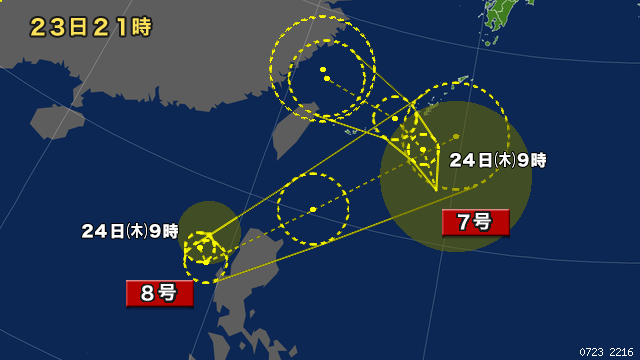 7월 22일 오후 일본 기상청은 필리핀 동쪽 해상에서 형성된 열대저기압이 24시간 이내에 제7호 태풍으로 발달할 것이라고 발표. 현재 중심기압 1000헥토파스칼, 최대풍속 15m/s, 순간최대풍속 23m/s로