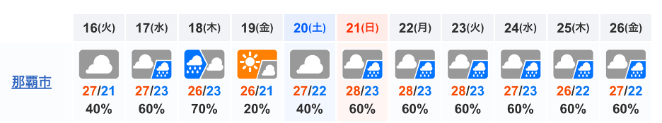 오키나와 날씨정보는 한국에서 제공하는 서비스를 이용해도 되고 Goole을 참고해도 좋다. 오키나와는 수시로 날씨가 변하기 때문에 현지 날씨정보 사이트를 이용하면 자세한 정보를 얻을 수 있다. 참고할 만한 날씨정보 사이트는 다음과 같다.