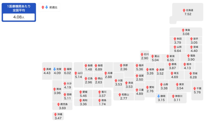 NHK의 보도에 따르면, 야마가타현이 병원당 환자가 9.64명으로 경계수준인 8명을 넘어섰습니다.