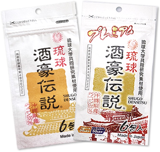 오키나와산 울금만을 사용한 간기능 식품 중에 슈고덴세츠(酒豪伝説)가 유명합니다. 누적 판매량이 1억 포를 돌파할 정도로 오랫동안 인기를 끌고 있습니다. 제조사는 오키나와 장생약초(沖縄長生薬草)입니다. 품질관리를 위해 직접 농원을 운영해 재배하거나 계약 농사에 위탁하고 있으며, 제조도 오키나와에서 하고 있습니다.