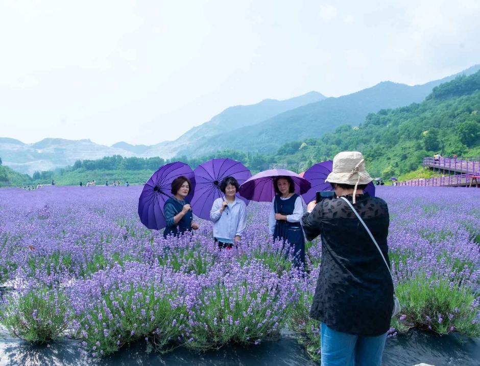 무릉계곡 일대에 펼쳐진 드넓은 라벤더 꽃밭을 자유롭게 관람할 수 있어요. 사진을 찍으며 아름다운 풍경을 만끽할 수 있습니다.