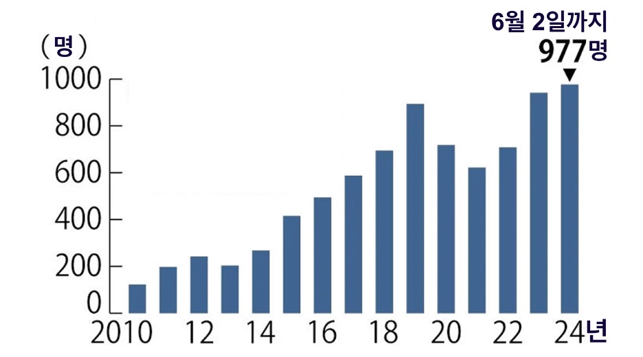 STSS 감염자 추이(출처: 요미우리신문 2024.6.7)